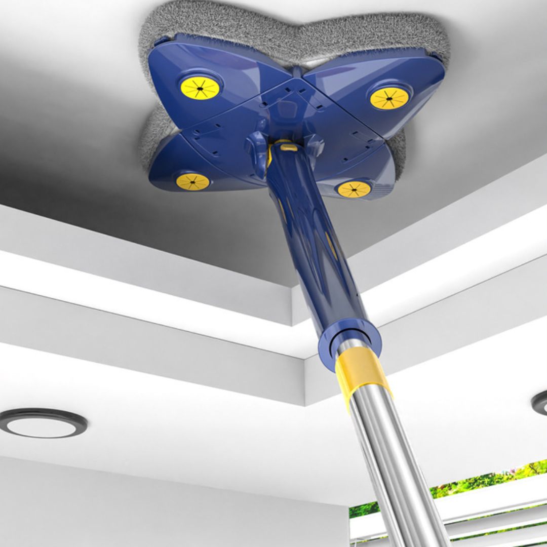 Una fregona telescópica autoescurrible con diseño triangular y rotación de 360°, creada para llegar a cada rincón y eliminar la suciedad en segundos.